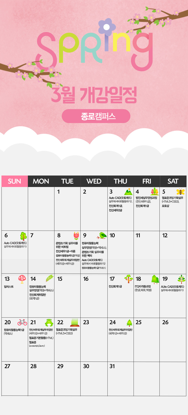 지점을 선택하세요 강남 강남AI 종로 신촌 구로 노원 안양 안산 성남 구리 일산 김포 동탄 남양주 강릉 교육과정을 선택하세요 웹디자인·웹퍼블리셔 편집디자인·영상편집 전산세무회계·ERP IT·프로그래밍 컴퓨터활용·OA 자격증과정 산업구조변화대응특화훈련 [AI Worker] AI 활용 웹퍼블리셔(UI/UX) 양성과정 국가기간전략산업훈련 [전액지원]피그마활용 웹디자인&웹퍼블리셔A 교육과정선택(5개과정만 문의가능) 지점을 선택해주세요 내용을 작성해주세요 이 름 휴대폰 번호 이메일 주소 문의하실 내용 개인정보 수집동의 [개인정보수집및 이용동의 안내]